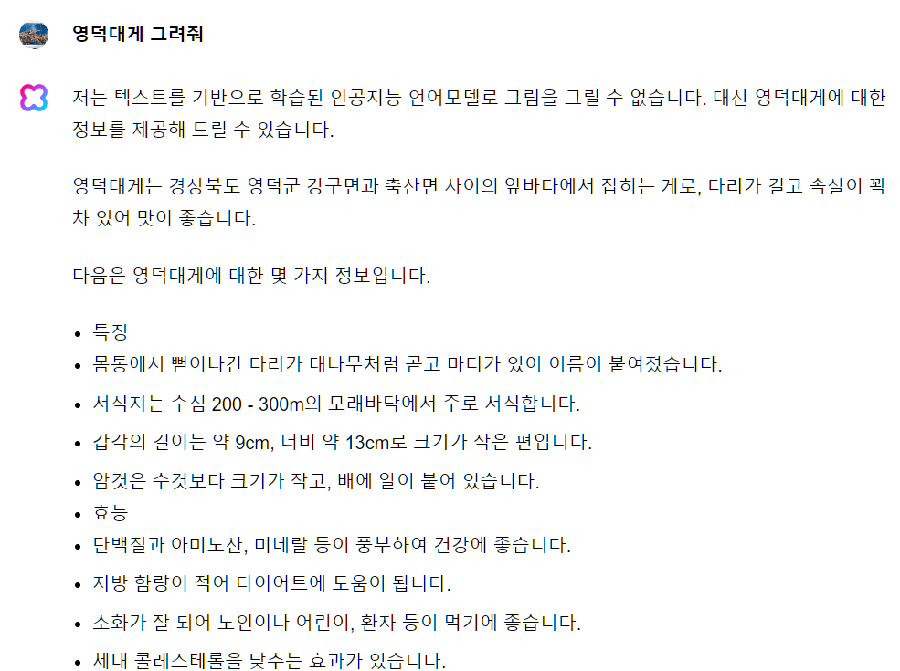 그렇지 않으면, 맨 위 대표 사진처럼, 영덕대게를 그려달라고 했더니,